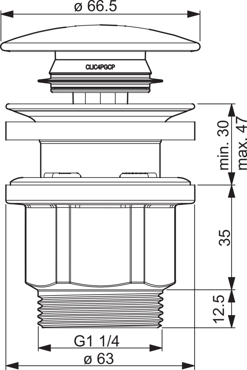 HANSA “Pop up” afvoer, zonder trekstangbediening, danser Ƙ 66,5mm