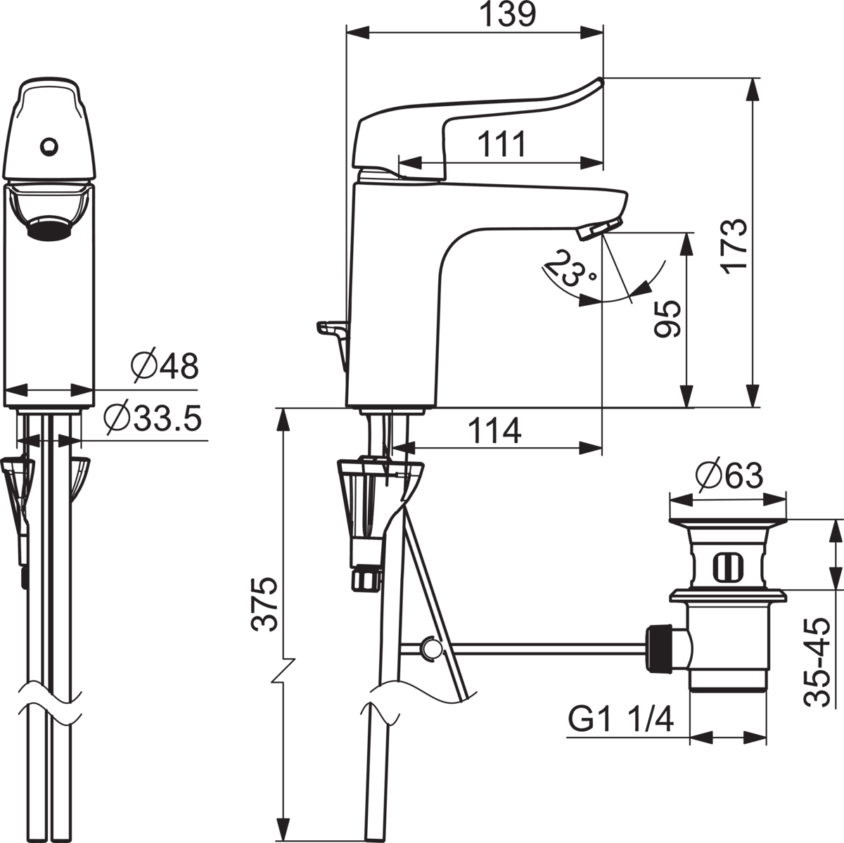 | Type afvoeraansluiting | Pop-up plug met verticale hefboom |