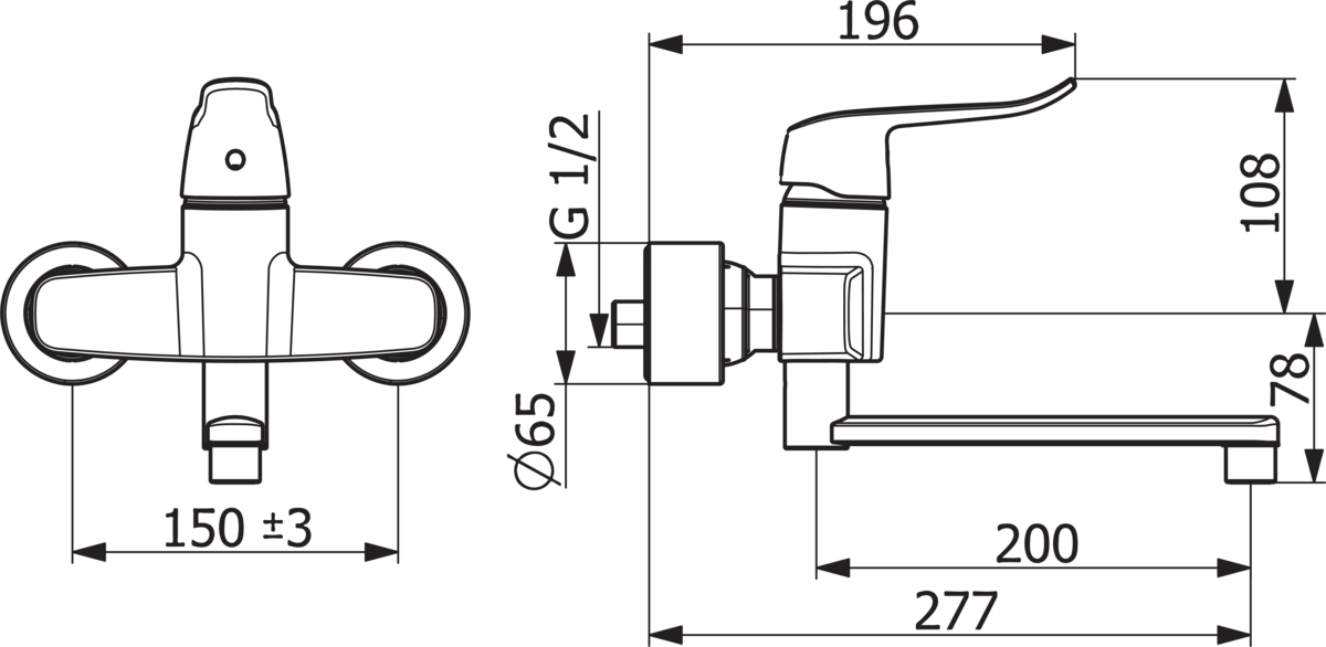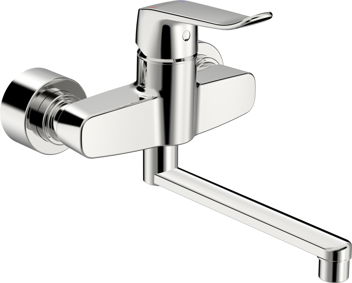 HANSACLINICA wastafelwandmengkraan, draaibare uitloop (120°/60°/0°); sprong 277 mm, excentrisch s-koppelingen, lange hendel