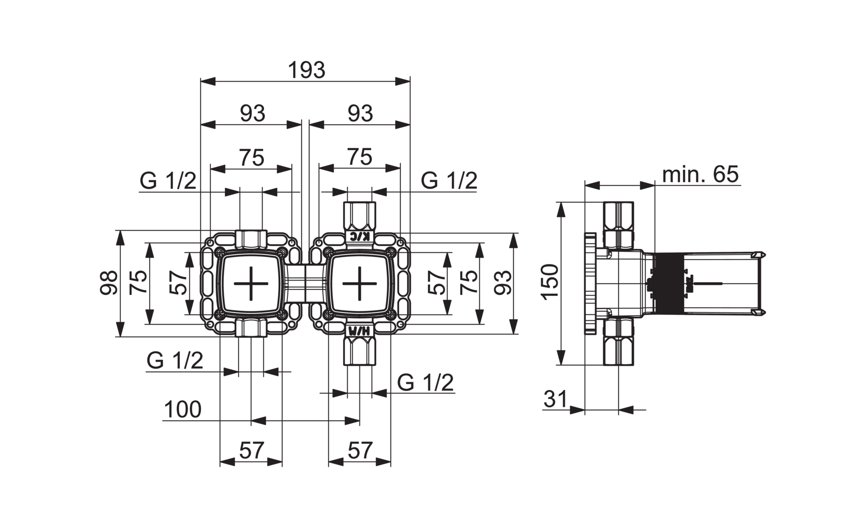 HANSAMATRIX inbouwunit tweeweg omstelling 4.0