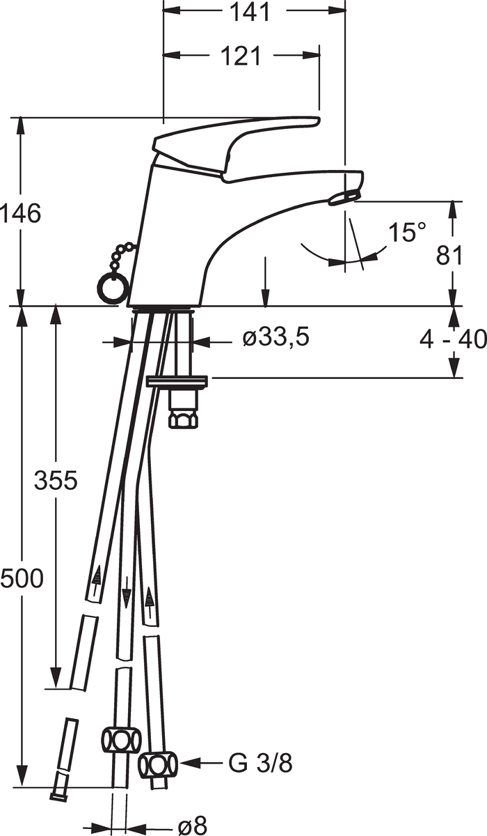 HANSAMIX wastafelmengkraan voor open boilers, met verzinkbare ketting, aansluiting via koperen pijp, uitloop 141mm