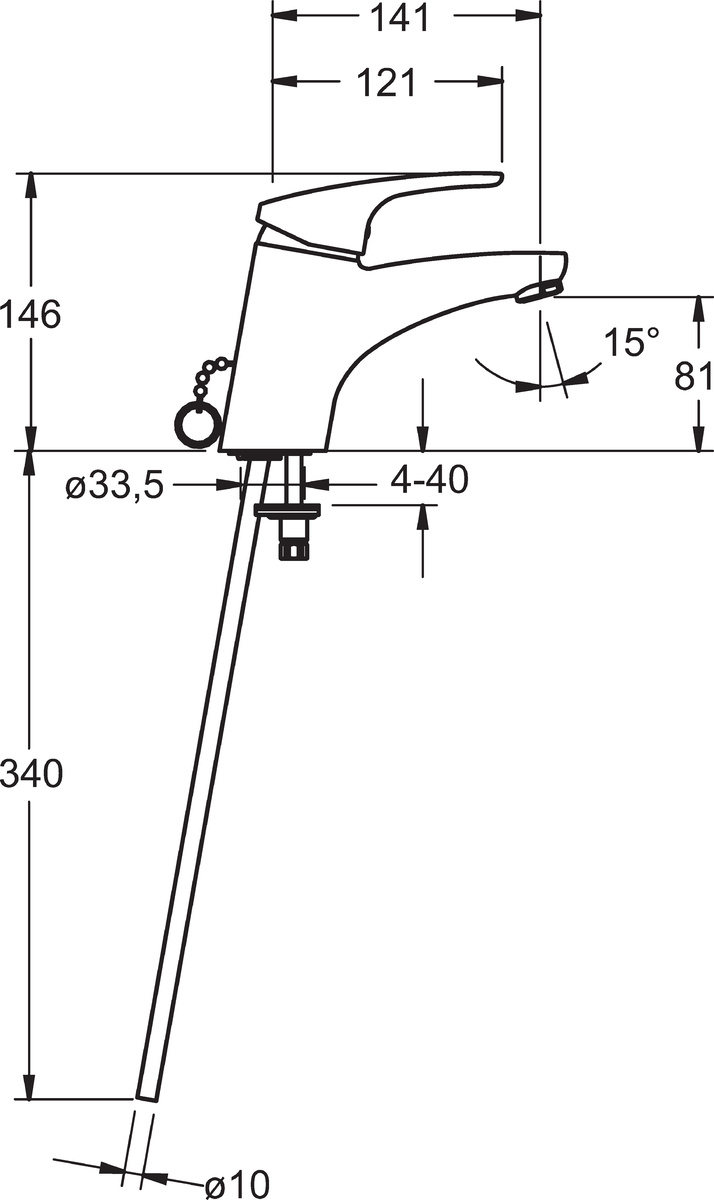 HANSAMIX wastafelmengkraan, zonder afvoergarnituur, met verzinkbare ketting, Uitloop: 141 mm, vast, gegoten