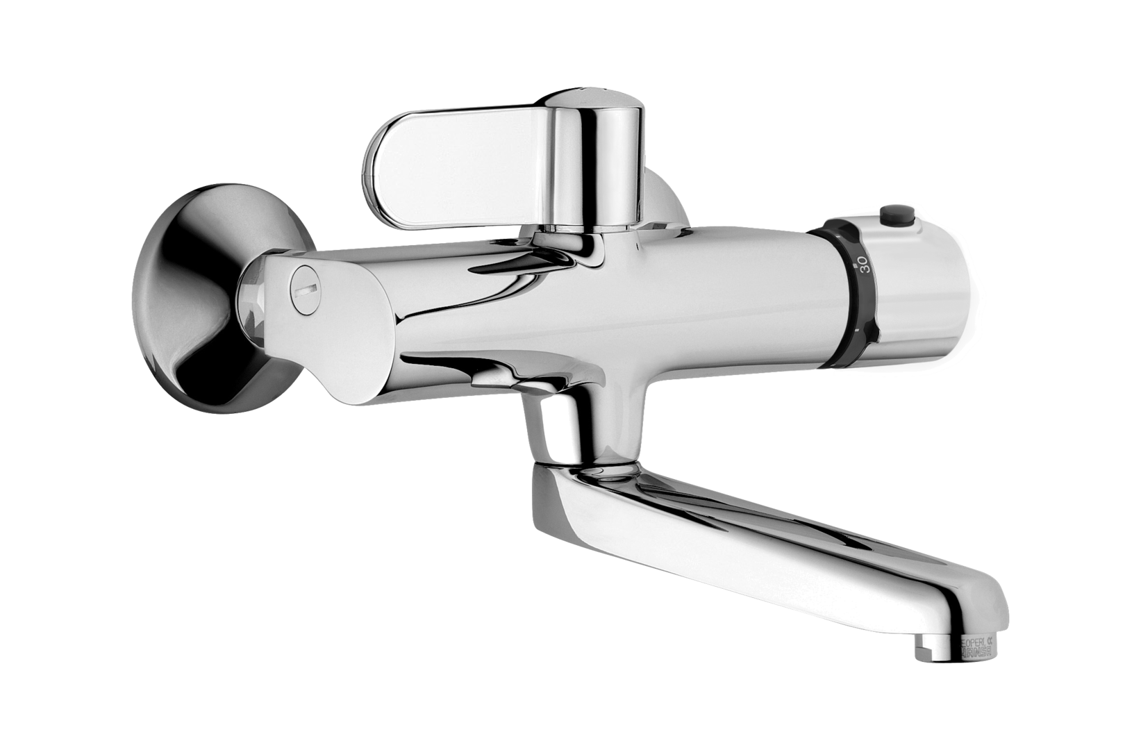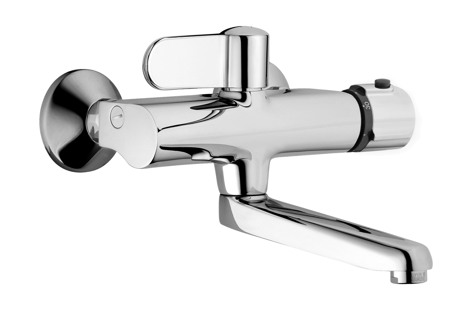 HANSATEMPRA thermostaat, met 120°draaibare uitloop of vast te zetten in de middenstand, met lange hendel, HOH 150+/-20mm, met afsluitbare S-koppelingen 1/2″x3/4″, sprong 245mm met desinfectie keuze greep